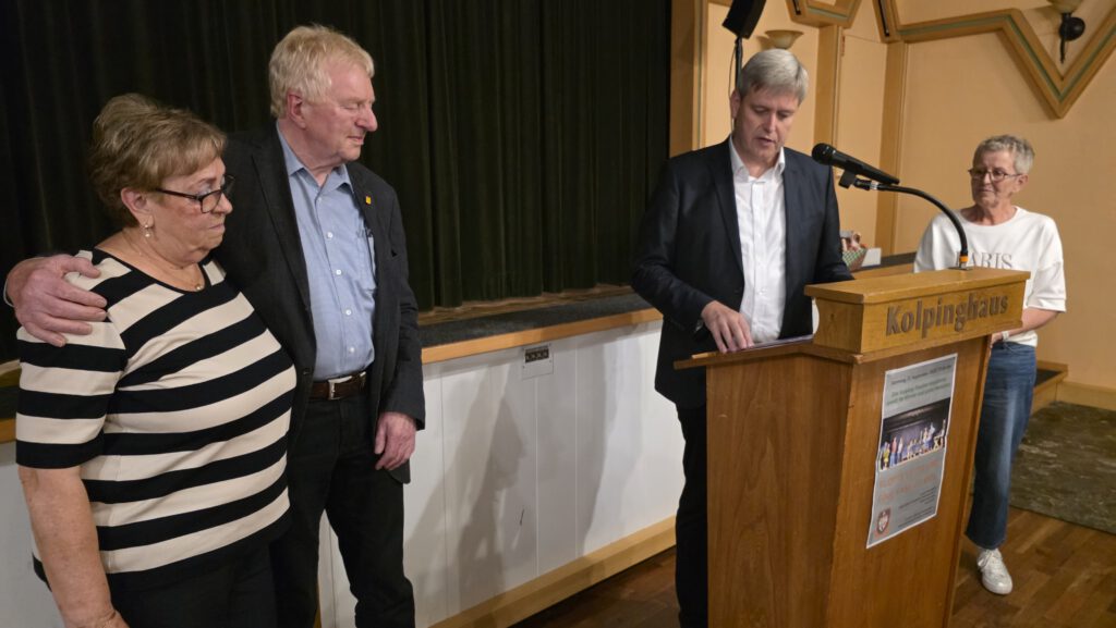 Bürgermeister Werner Schräer würdigte anschließend in seinem Grußwort die Theatergruppe: „Das Kolpingtheater ist eine Bereicherung für die Stadt Haselünne.“ Er dankte allen Mitgliedern für ihr großes Engagement und die wunderbare Gemeinschaft, die auch hinter der Bühne spürbar sei. In seiner Rede lobte Schräer besonders das langjährige Wirken von Willi Jansen und erzählte mit einem Augenzwinkern, dass Jansen bei der Auswahl der Stücke doch eher seine Frau Brigitte die Zügel in der Hand habe lassen – sehr zur Belustigung der Gäste.