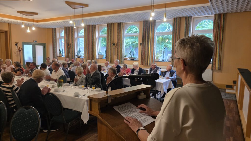 Ein besonders berührender Moment folgte, als Ulrich Högemann das Wort ergriff: „Dieses Jubiläum ist viel mehr als die Summe der Jahre. Es steckt voller herzlicher Momente, voller Begegnungen der Generationen und von echtem Herzblut.“ In einer bewegenden Rede würdigte er im Anschluss den scheidenden Theaterleiter Willi Jansen, der das Zepter nun an Elisabeth Tebben übergab. Jansen, seit 1981 Mitglied und seit 2001 Regisseur, erhielt minutenlangen Applaus und stehende Ovationen für seine langjährige Arbeit.